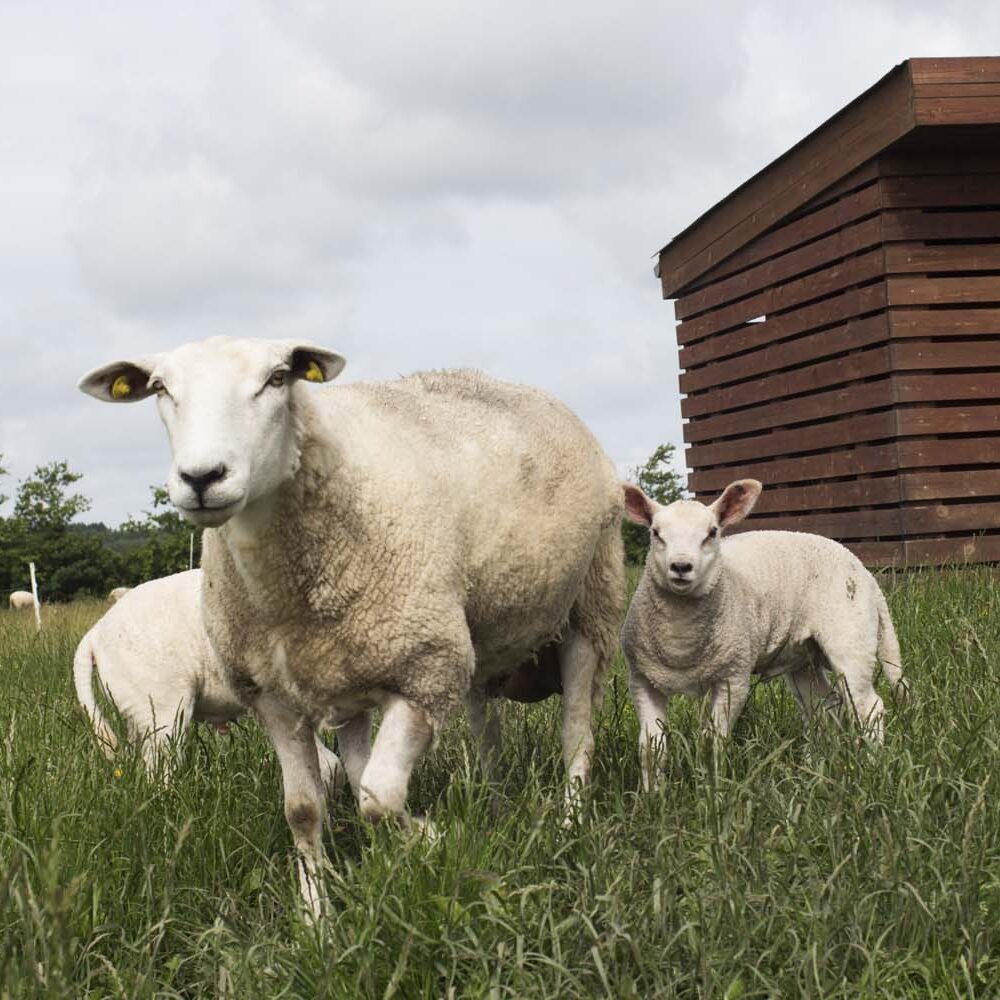 I øjebliket har vi fire grise, som vi opfodrer på friland til eget forbrug. Fra tid til anden har vi også haft kødkvæg.